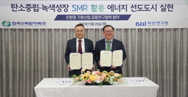 한국수력원자력-부산연구원, 'SMR활용 탄소중립도시 구축 MOU' 체결