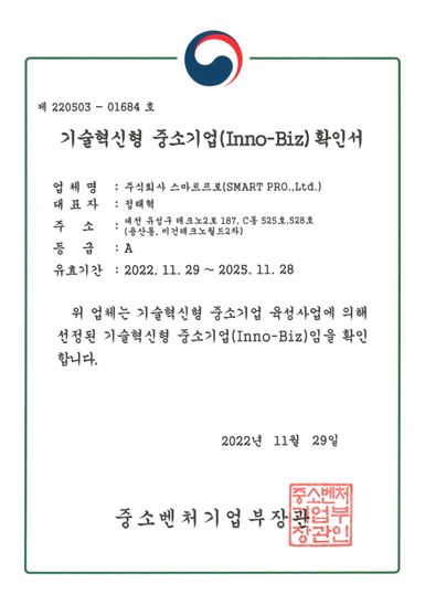 기술혁신중소기업 INNOBIZ 획득